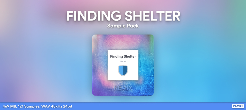 Most of them are entirely self-made/recorded and the others are processed heavily. I took a lot of time to create those unique textures using my phone’s audio recorder app and interesting effect chains. The glockenspiel for example is made by slicing, warping, pitching and rearranging certain parts. For the pad sounds I simply put lots of reverb on stuff I recorded with my Pixel 3 (e.g. the orchestral tuning thing). To make them more universal, I provided 3 different versions/flavors of each pad sound. There are also some Nico Lud signature sounds in there like the Flute or the Guitar Chop (which I tend to use a lot in other production, haha). Because I used an incredibly big amount of wooden percussive sounds, I just selected a few of the best ones. I also recorded a lot of them myself. So I hope you enjoy my FINDING SHELTER PACK!
